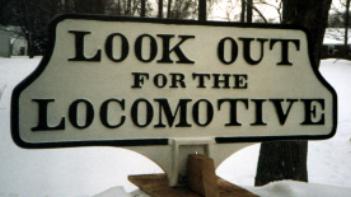 LOOK OUT FOR THE LOCOMOTIVE sign - 17" high (including